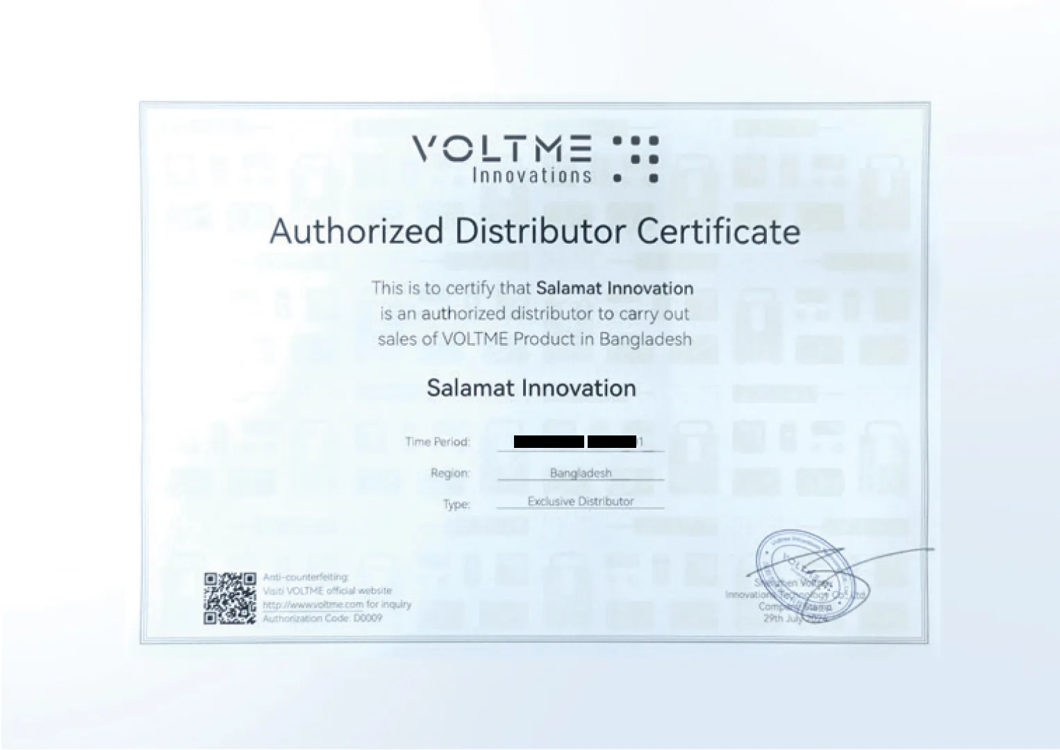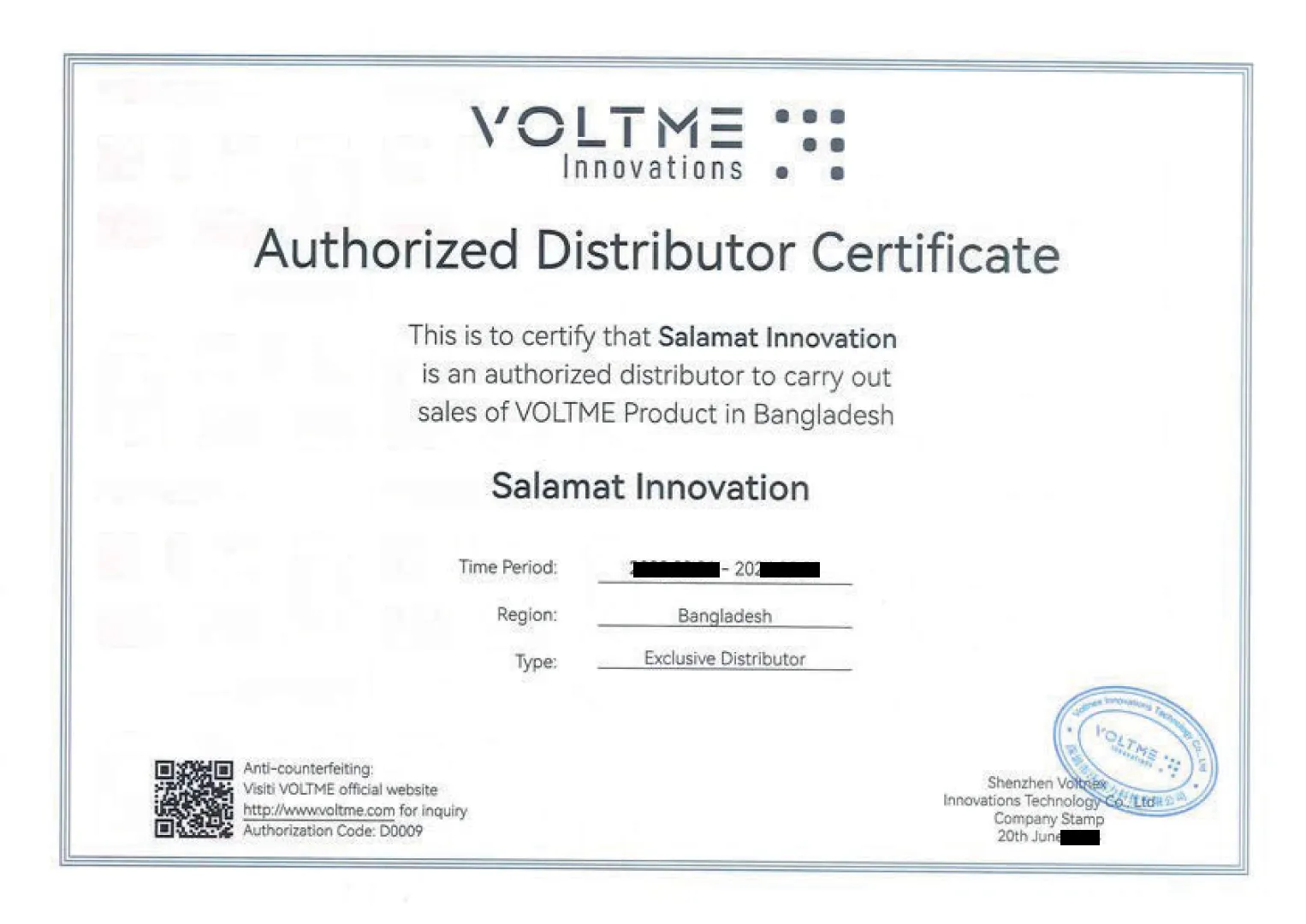 Currently we are the exclusive distributor of VOLTME by Shenzhen voltnex innovation LTD. in Bangladesh.