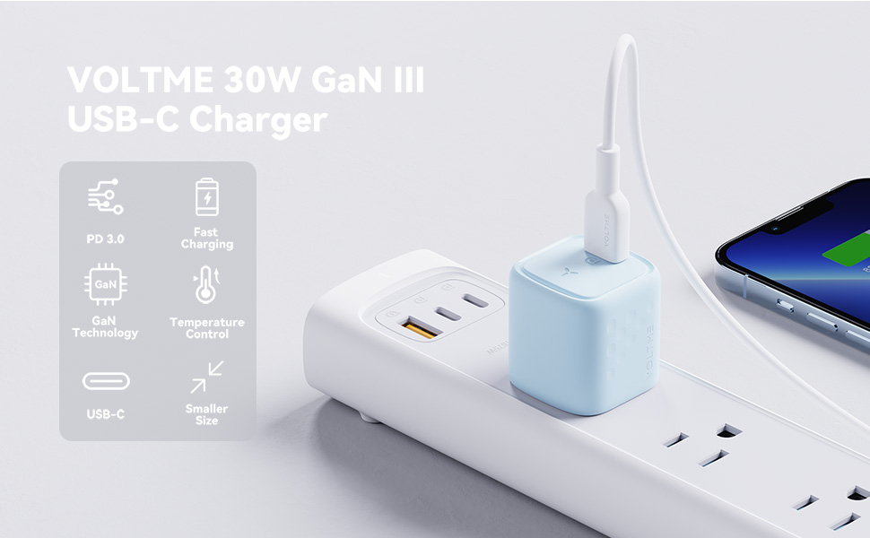 Get 50% charge in just 25 minutes with the VOLTME Revo 30 Mini C, a compact 30W USB-C fast charger with PD 3.0, QC 3.0 & GaN III tech. Safe, powerful & perfect for Apple, Samsung, Google.