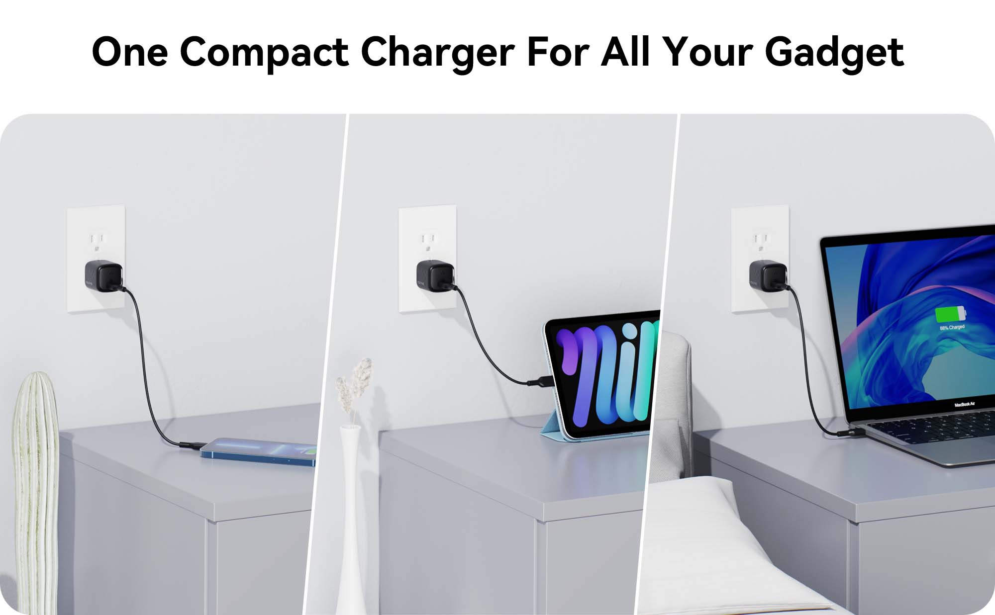 Certified and built with GaN III technology, it’s not only powerful but ultra-compact at just 1.3 x 1.2 x 1.2 inches and 1.5 ounces in weight. Safety features include overcurrent, overvoltage, overheat, and short circuit protection, certified by CE, FCC, and RoHS.